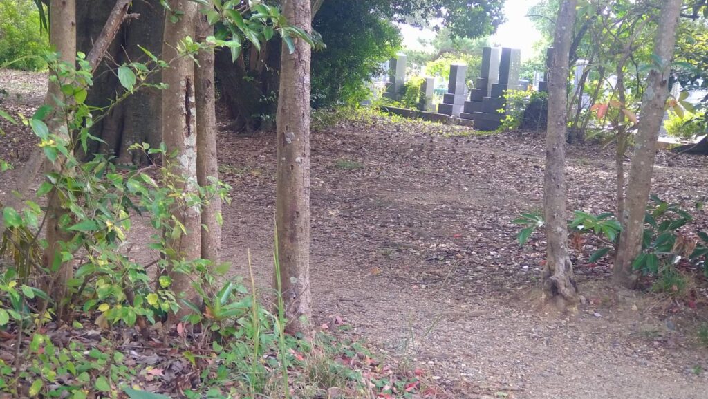 場所はメルシーズカフェ(向山の)向かいにある公園と緑地墓地の駐車場の間にあります。公園ブランコの後ろ側のスペース。「どうぞこちらですよ~」と誘われているかのような入口があります。