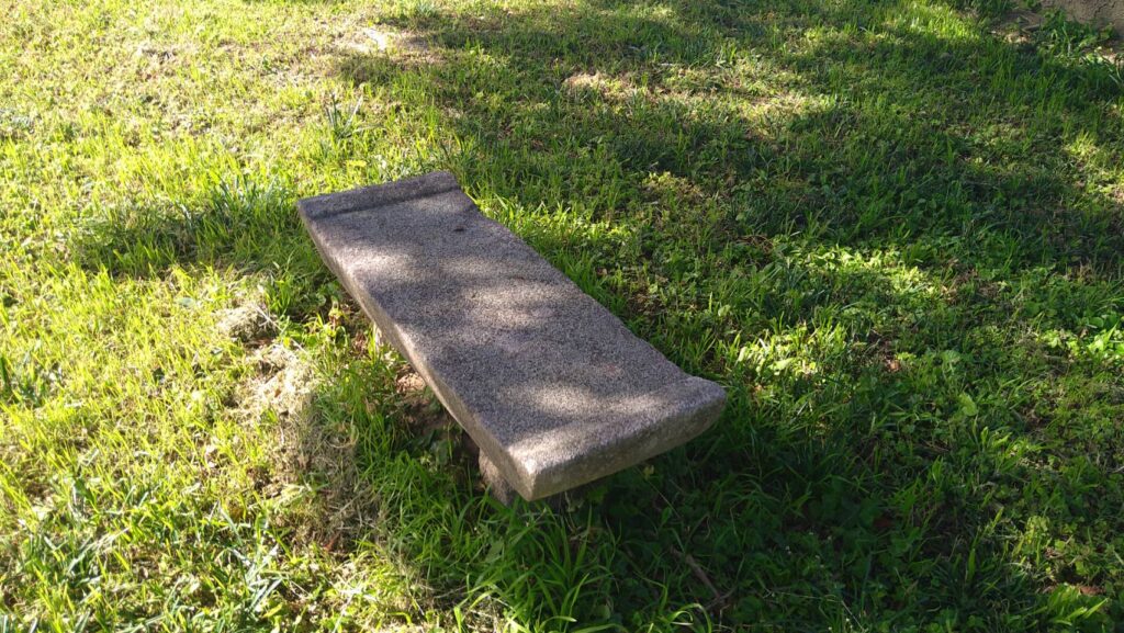 こちらちょうどよい場所にちょうど良い石のベンチを発見。
